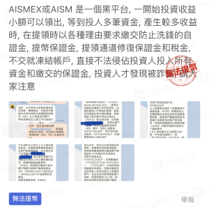 AISMอดีตและ AISM เป็นแพลตฟอร์มที่ก่อให้เกิดการฉ้อโกงและมีกลุ่มการฉ้อโกงกลุ่มเดียวกันที่อยู่เบื้องหลัง