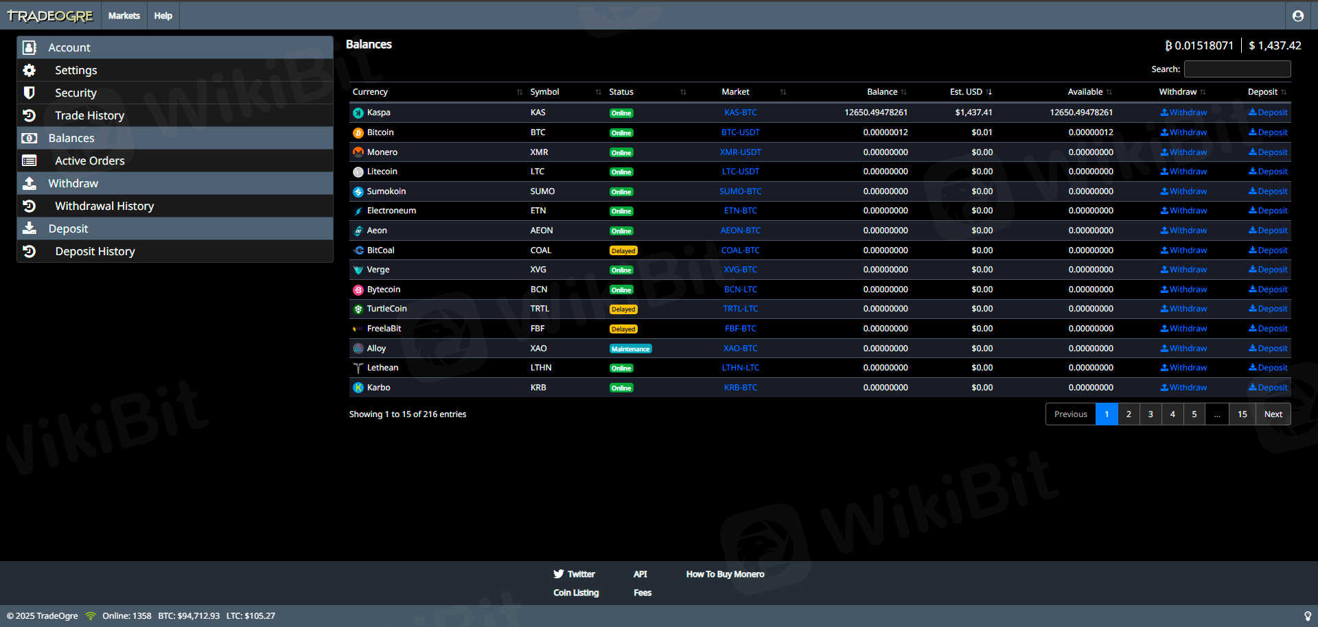 ไม่สามารถแลกเปลี่ยนหรือถอนเงินจากแลกเปลี่ยน Kaspa ตั้งแต่ปี 2020 เป็นต้นไป พวกเขาเป็นโกง โปรดอย่าใช้แลกเปลี่ยนนี้ ยอดคงเหลือของฉัน Kaspa12650 คือ ($1,437.41) ถูกขโมยไปแค่นั้นเอง