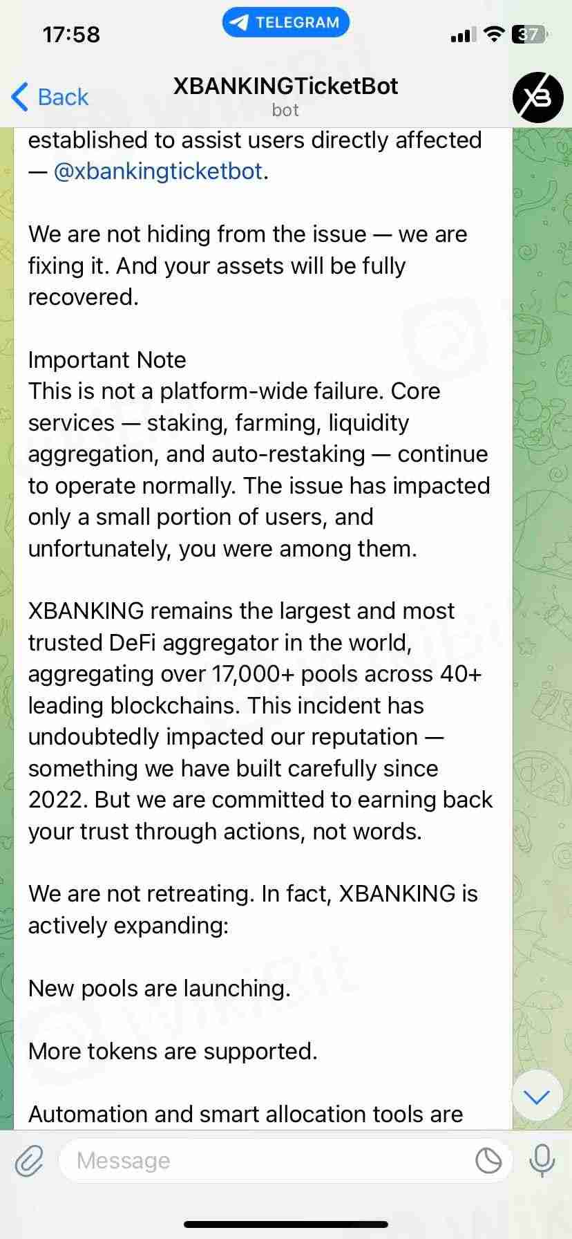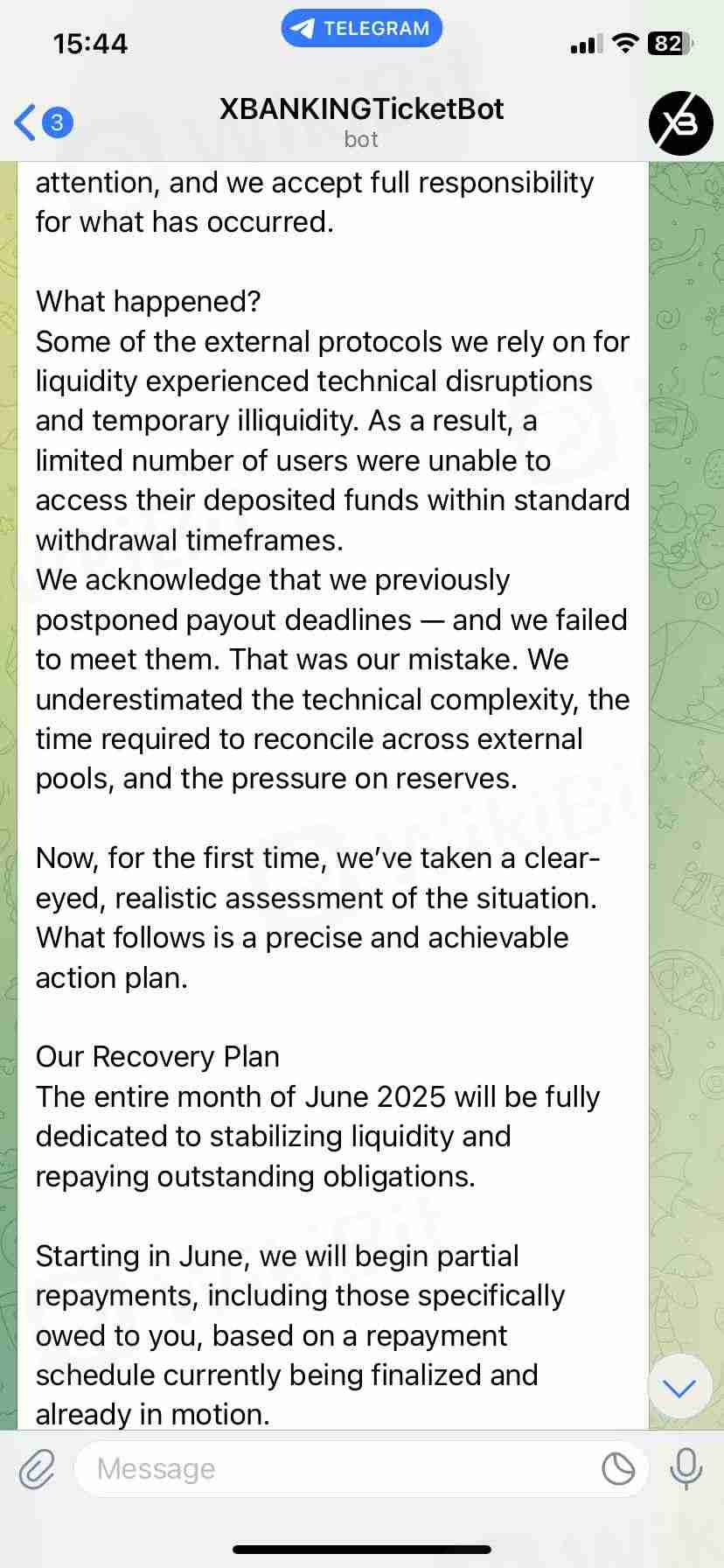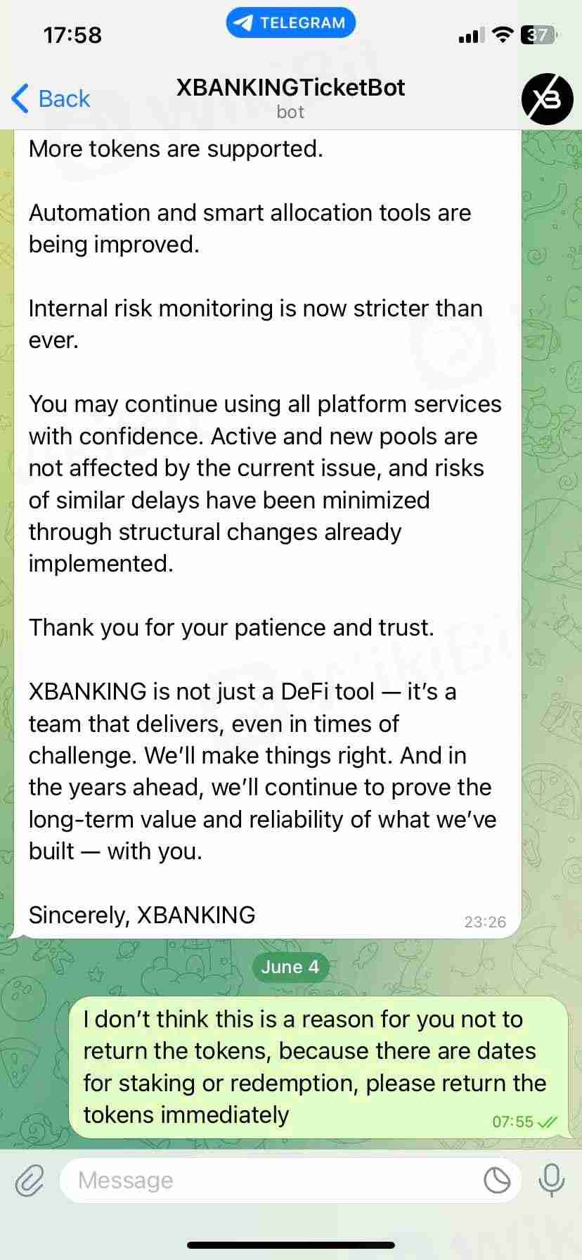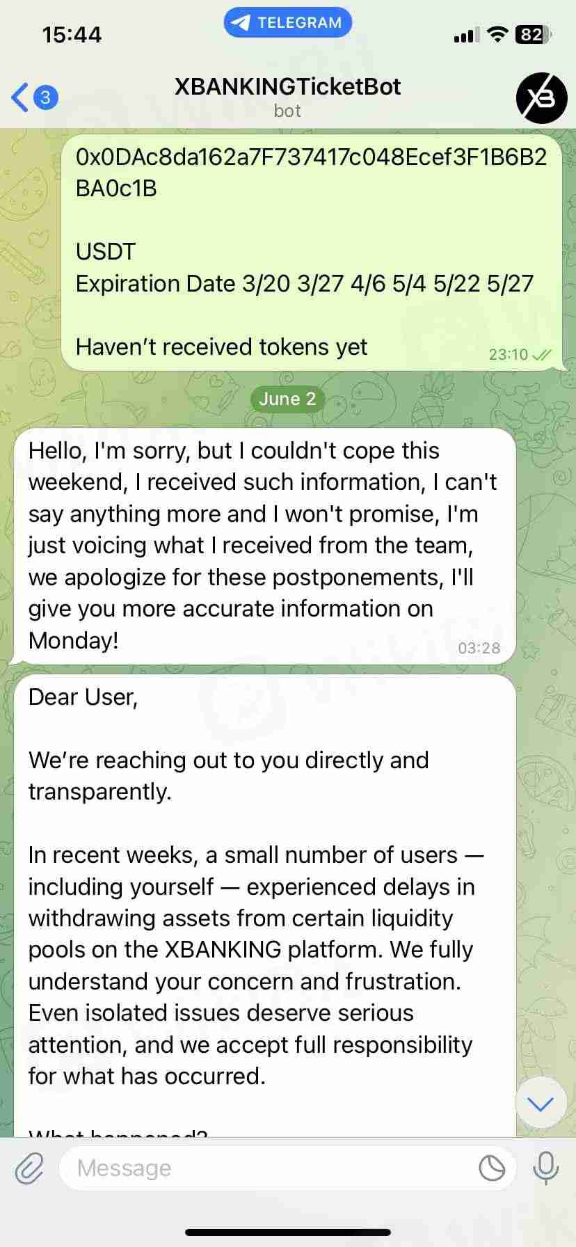 Regarding Reply from XBANKING contentYou keep leaving the same review repeatedly while not providing information. Here is what has been written to you repeatedly but you don't do it, so we consider your review not based on real experience or you have confused our company with x-banking or xbank, they are different companies.Response:if the issue is not resolved, I will of course continue to Review.I have already provided you with the information.The transaction details, staking date and wallet address are provided as shown in the pictureThe company name is on the picture.All the information was provided to you, but you lied that you didn't receive it. Are you trying to deceive everyone?Please check out this page I created which will clearly show you what Xbanking is doing xbanking, which has less informationIf you have any questions or concerns about the project, it is best not to invest in order to avoid losses.