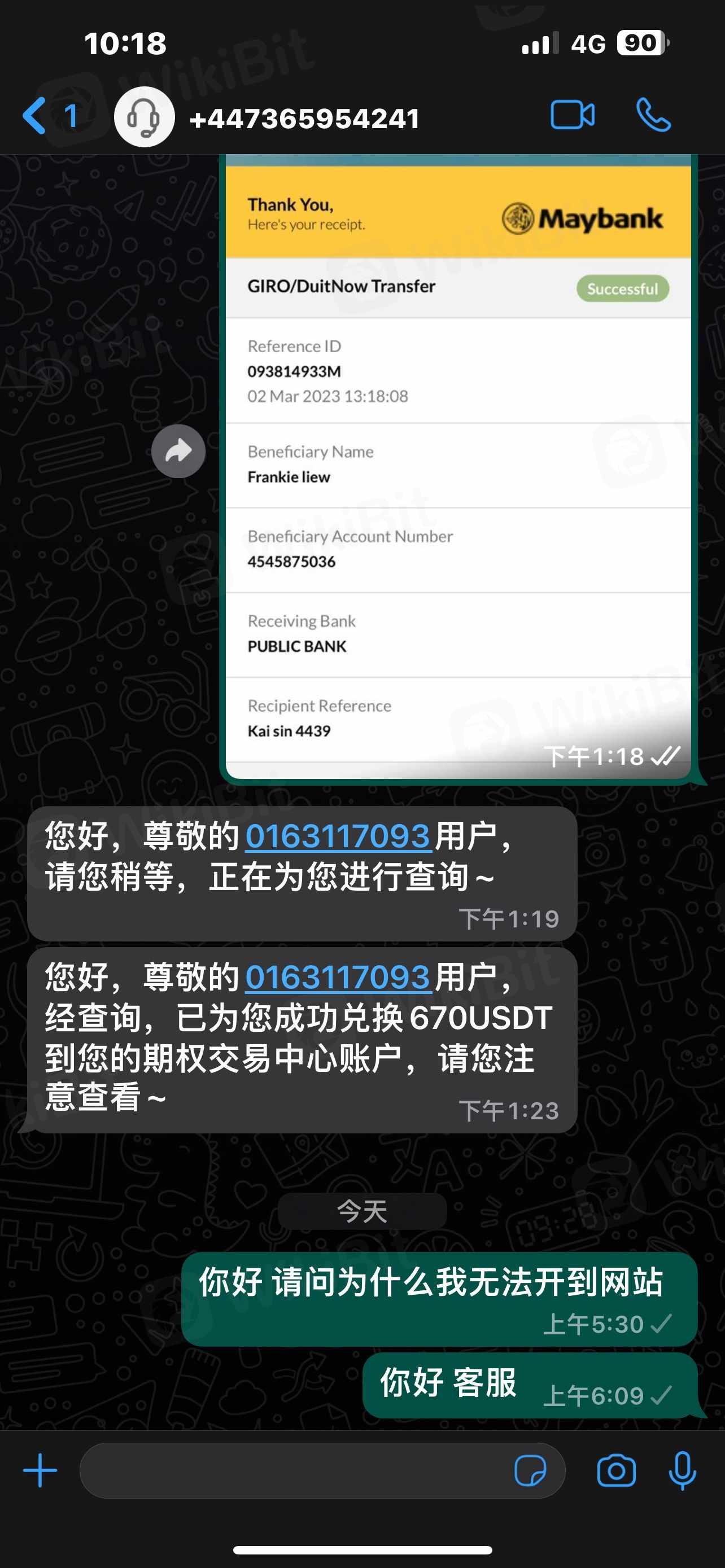 Dịch vụ khách hàng đang ngoại tuyến. Không có phản hồi cho tin nhắn. Trang web không thể được mở cũng như rút tiền
