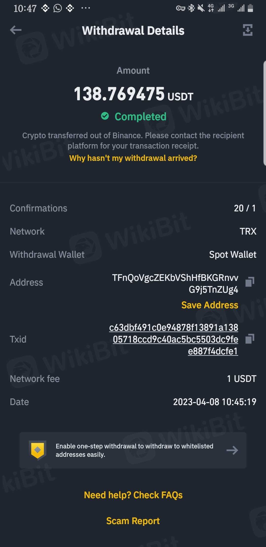 I can't withdraw from my tether account after registration and deposit.