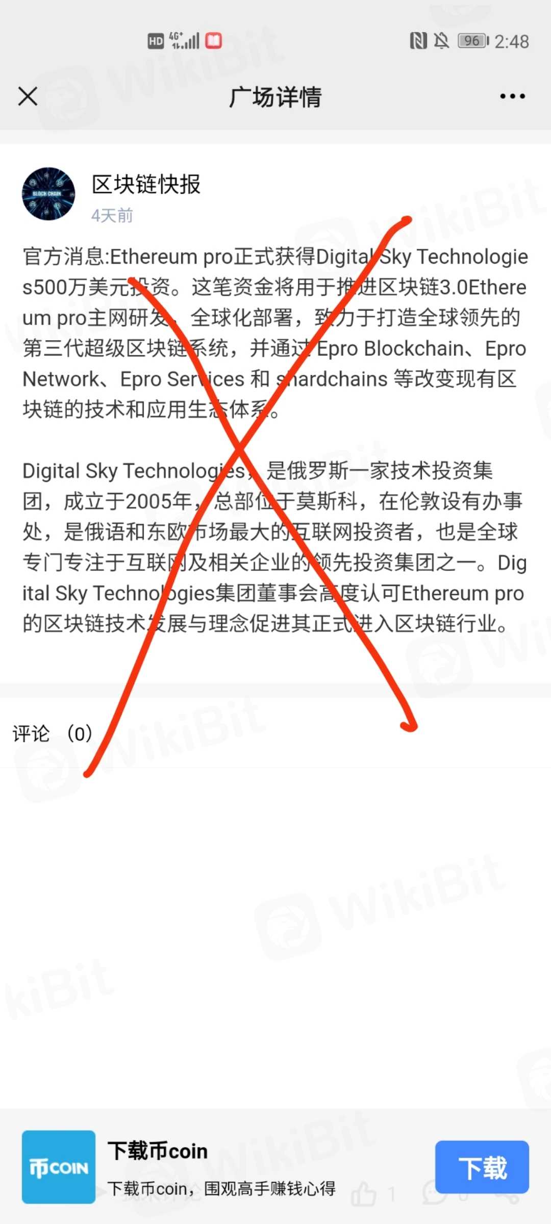 伪造V神推特图片!发布假的媒体图片 说获得了500万美元投资!去年就用过这套路!去年上线就破发!天天在微信弄得跟传销一样!说没上过任何交易所,去年就跟ceo合作 最后归0!大家谨慎!电报群一质问项目方 直接永久拉黑!