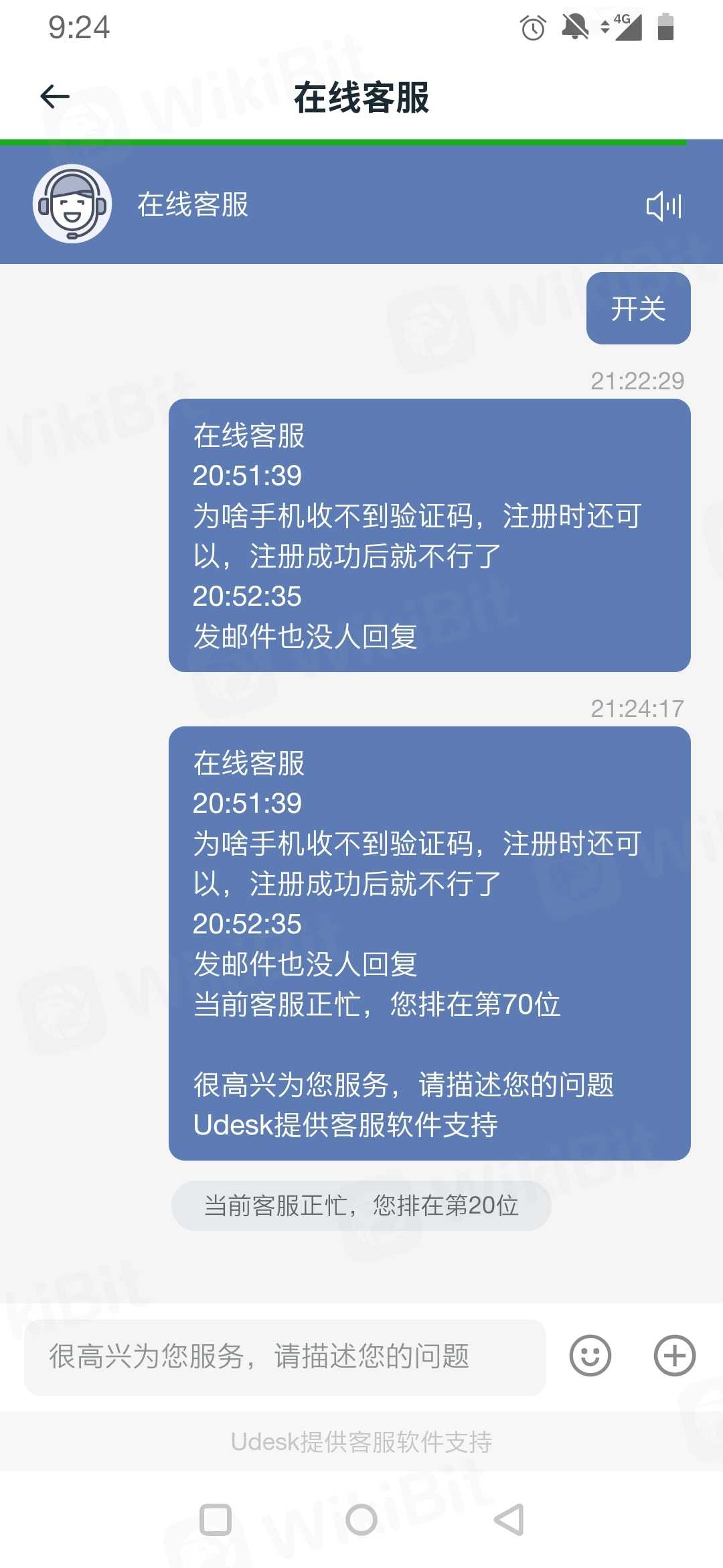 排队咨询客服第200名排到20名后又跳转到198名重新开始,手机注册时可以收到验证码,要设置交易密码时时却收不到