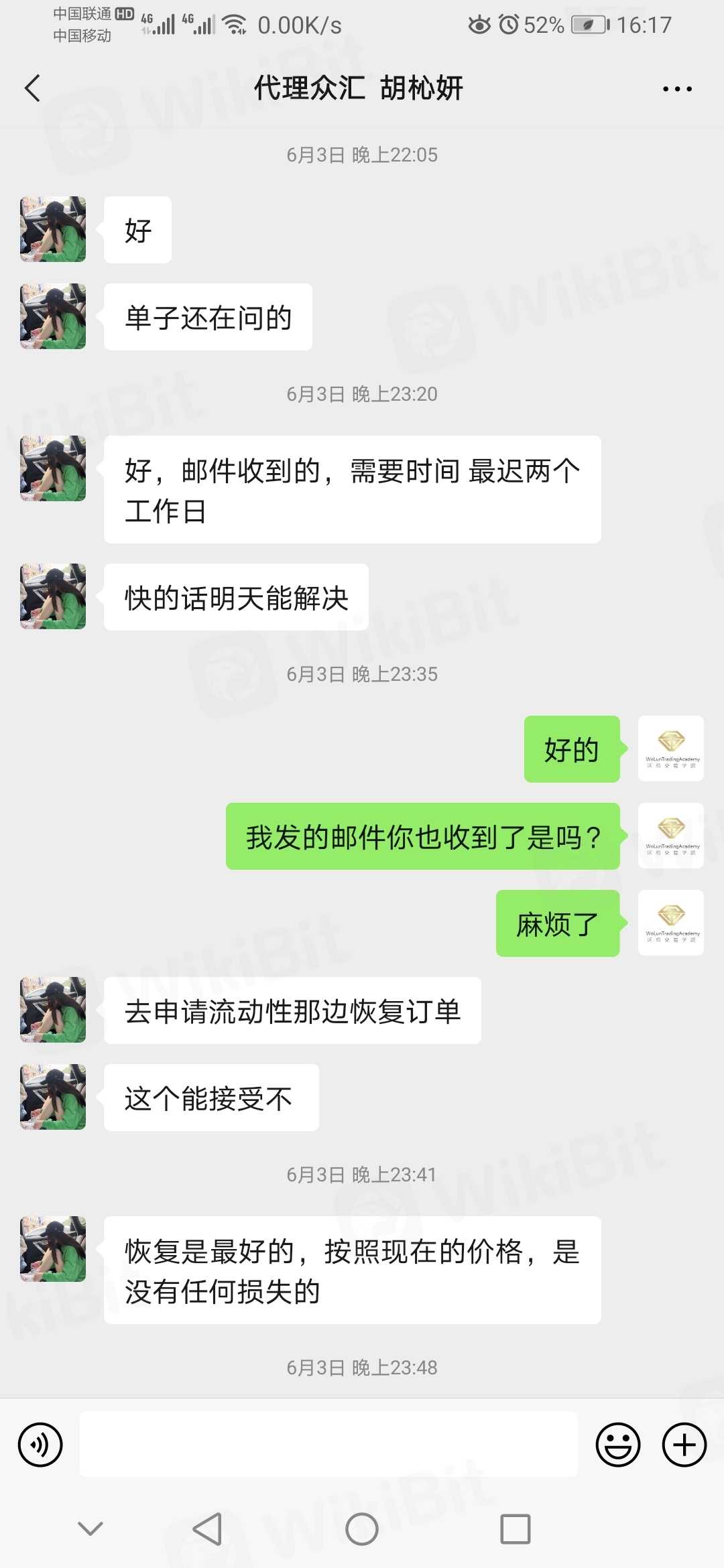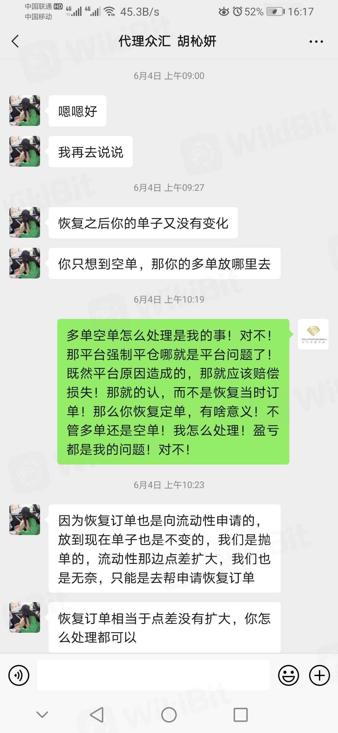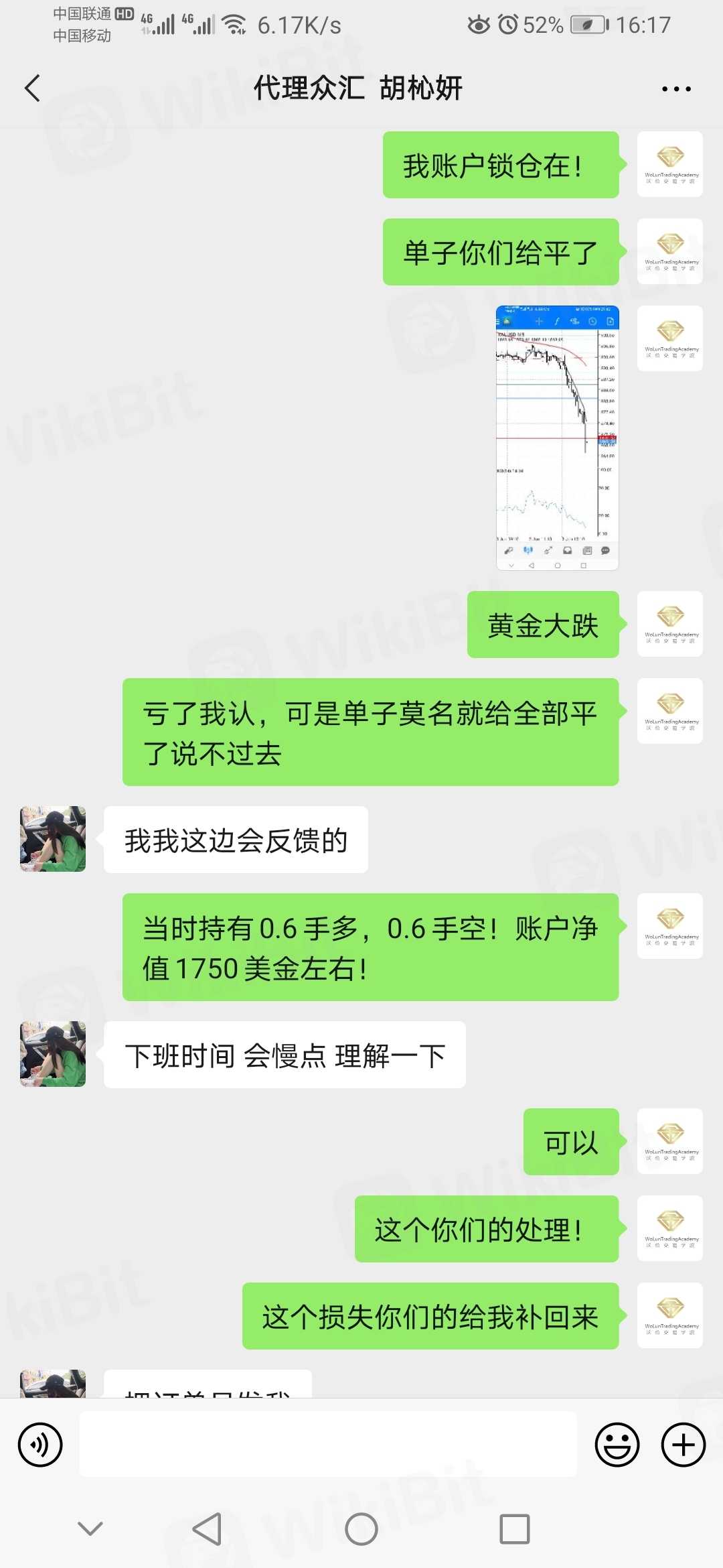 wetrade众汇三流平台,6月3号小非农,无故平掉我锁仓单子。刚开始平台承认,后来有不认,现在关闭后台无法出金,业务员把我还拉黑了!不过经过查询,该平台之前在国内是有一家公司的!已经注销,通过工商幸喜查询到,公司官方网址跟现在正在运作外汇网址一样!可以断定这是一个国人控制的资金盘,老板就是林孝盛。通过业务员聊天得知,他们目前在深圳是有办公场所的!,经过监管查询,也证实目前wetrade众汇是裸监管!被骗的赶快报警吧!我目前已经报警立案!
