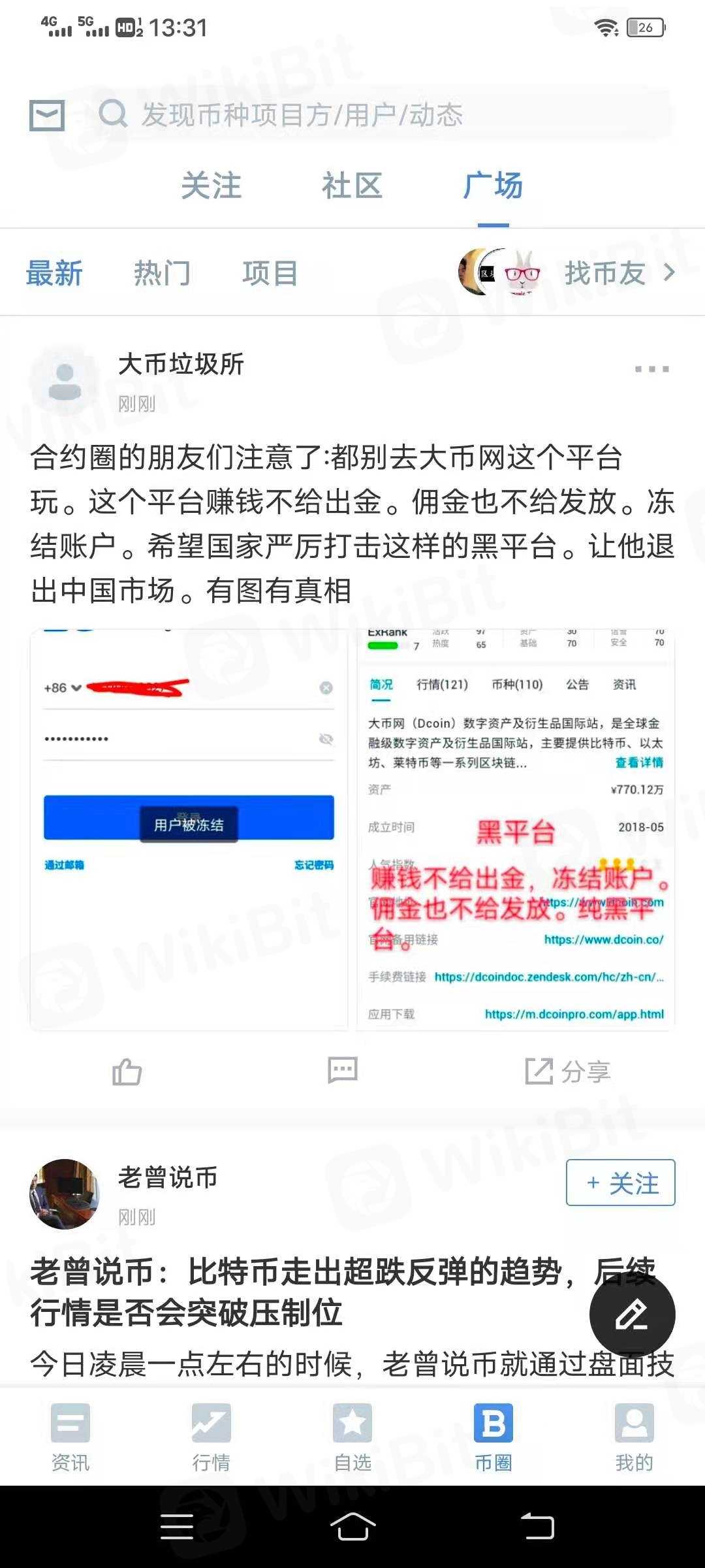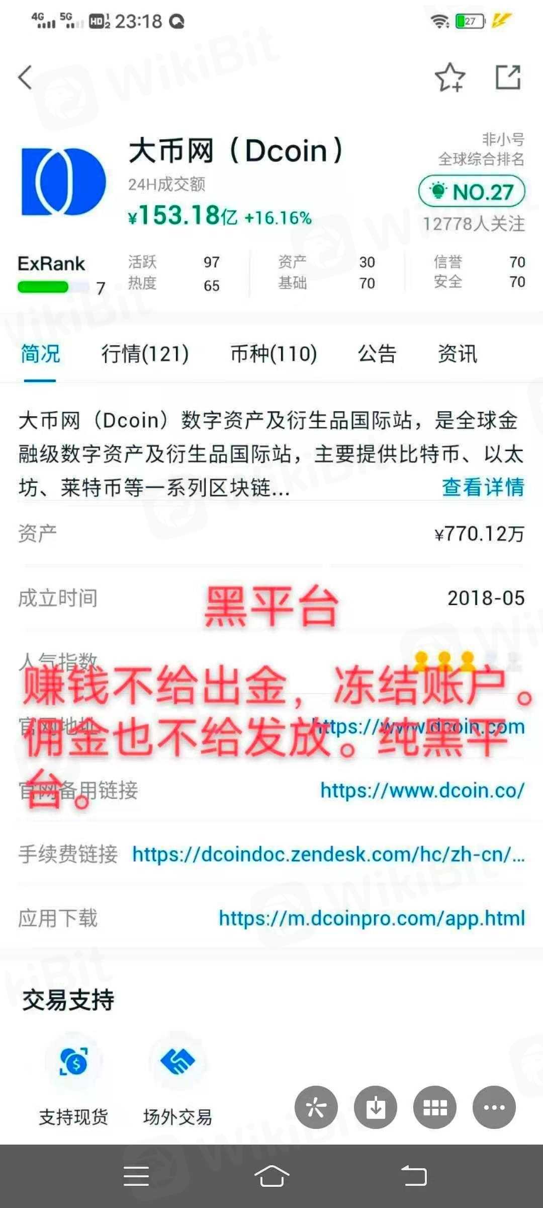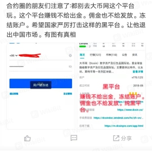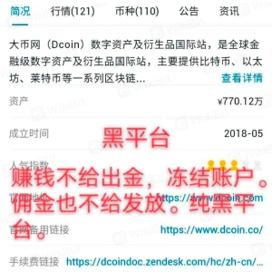 合约圈的朋友们注意了:都别去大币网这个平台玩。这个平台赚钱不给出金。手续费也不给发放就算了。直接把冻结账户。本金不让提!