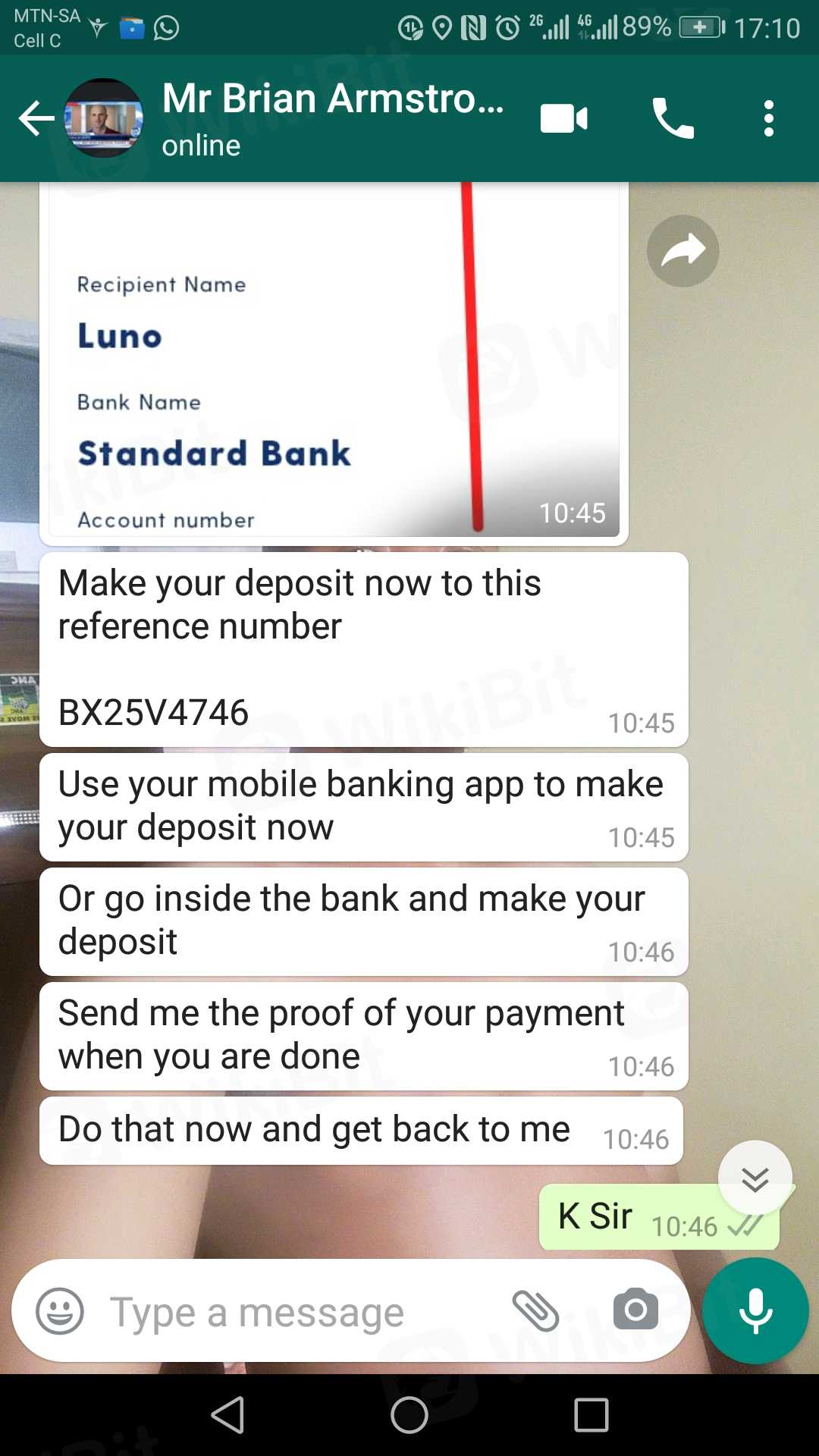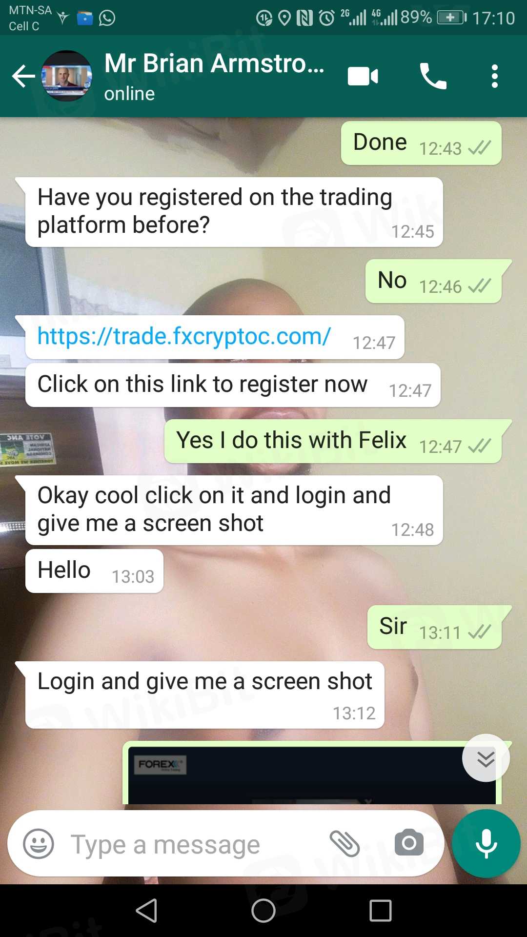 我在 Facebook 上收到了一个叫 Felix Thabo 的人的好友申请,自称是商业顾问。如果我可以入金 R3000 ,那么 7 天后能获得 R33000 的利润,我认为真的可以帮我还清债务,事实是他们从我的余额拿走了 R2000。