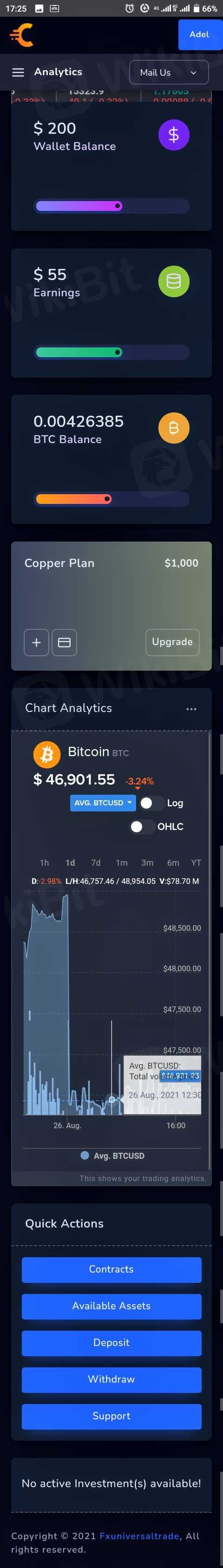 I was told that I can invest with the minimum amount of R500 after I transferred the amount of R500 worth of Bitcoin to their platform they told me that it was insufficient and I have to top it up with R900 they contacted me after two weeks telling me that they managed to trade with the minimum amount I paid but I need to pay the balance of R900 for them to pay the profits to me