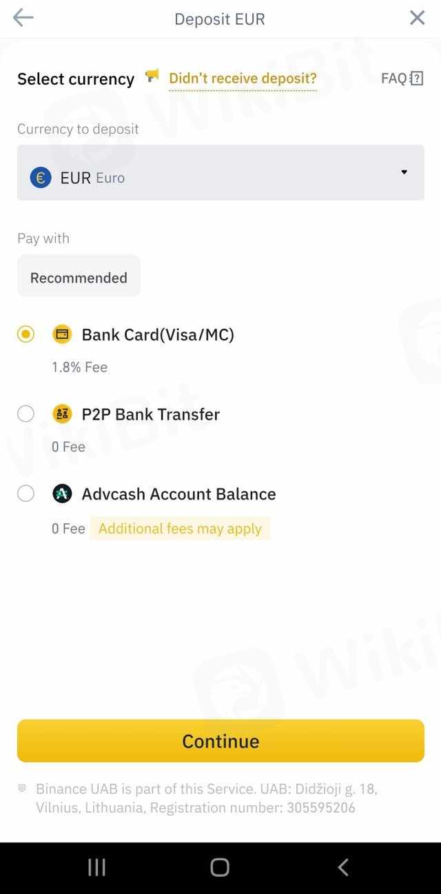 信用卡存款需 1.8% 佣金,免费 sepa 或 cc 存款不可用。