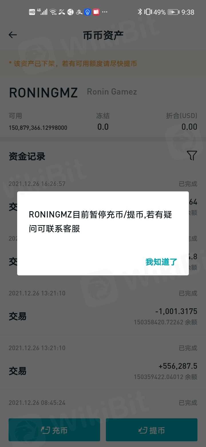 我是2021年底!从火币网提币到zt!当中挑了10个自选交易对!观察了几天!发现roningmz币交易对,每天都有5-6百万u的量!亿级的币量出入!感觉该交易对!在zt量比较大!交投活跃! 但我没想到数据都是做出来的! 三日后暴跌! 然后呢! 然后! 就下架了! 这种量!zt仅仅刷了2个月! 就拋弃了! 在此期间!我一直挂单卖出! 但无论你挂多低的单! 总有更低! 所以! 所以! 结果!我一个币都卖不掉!直到下架! 那么! 万般无奈!提币呗! 但是! zt耍流氓! 怎么玩你!他说了算! 人可以走! 币留下!