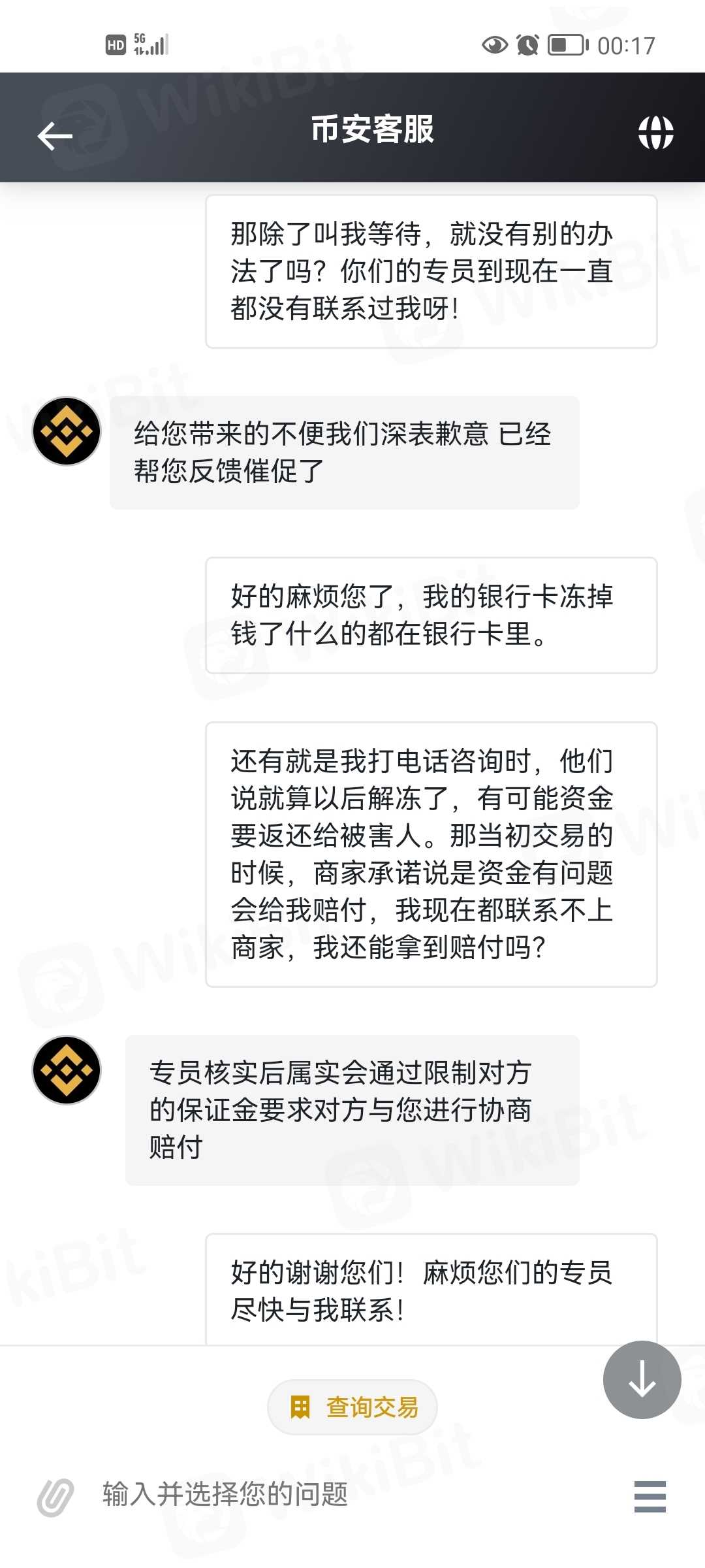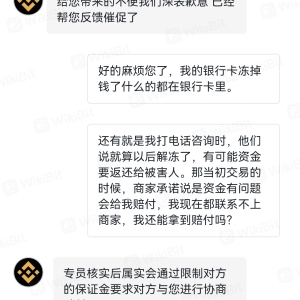 在平台出金法币的时候,银行卡被十多家公安机关冻结,第二天发现以后联系公安机关,让我提供资金合法相关资料,而平台和商家却叫我等待就行了,当初交易的时候商家也承诺,资金有问题会全额赔付,平台客服也说,后期会联系商家和我协商赔付问题。听信他们以后使我错过最佳解冻期,现在银行卡还在冻结着已经有十多天了,资金有被划扣风险,平台确说联系不上商家,让我自行解决。