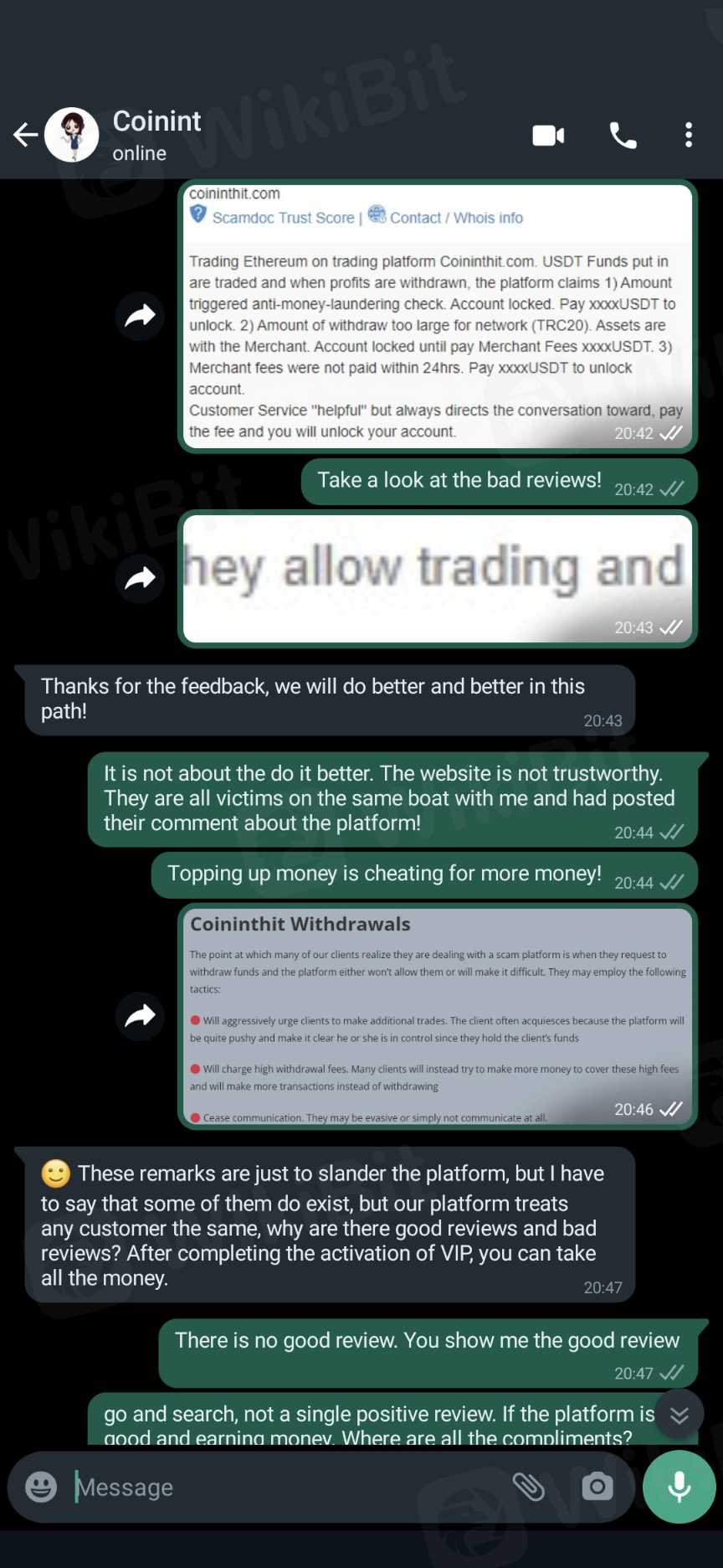 Coininthit.com 要求您充值出金的33%以提升至 VIP,然后才能处理提款。没有任何有效力的协议或政策提到VIP特权或提款政策。他们愿意通过提供折扣来表达他们的同理心,这样您就会再次存款。
