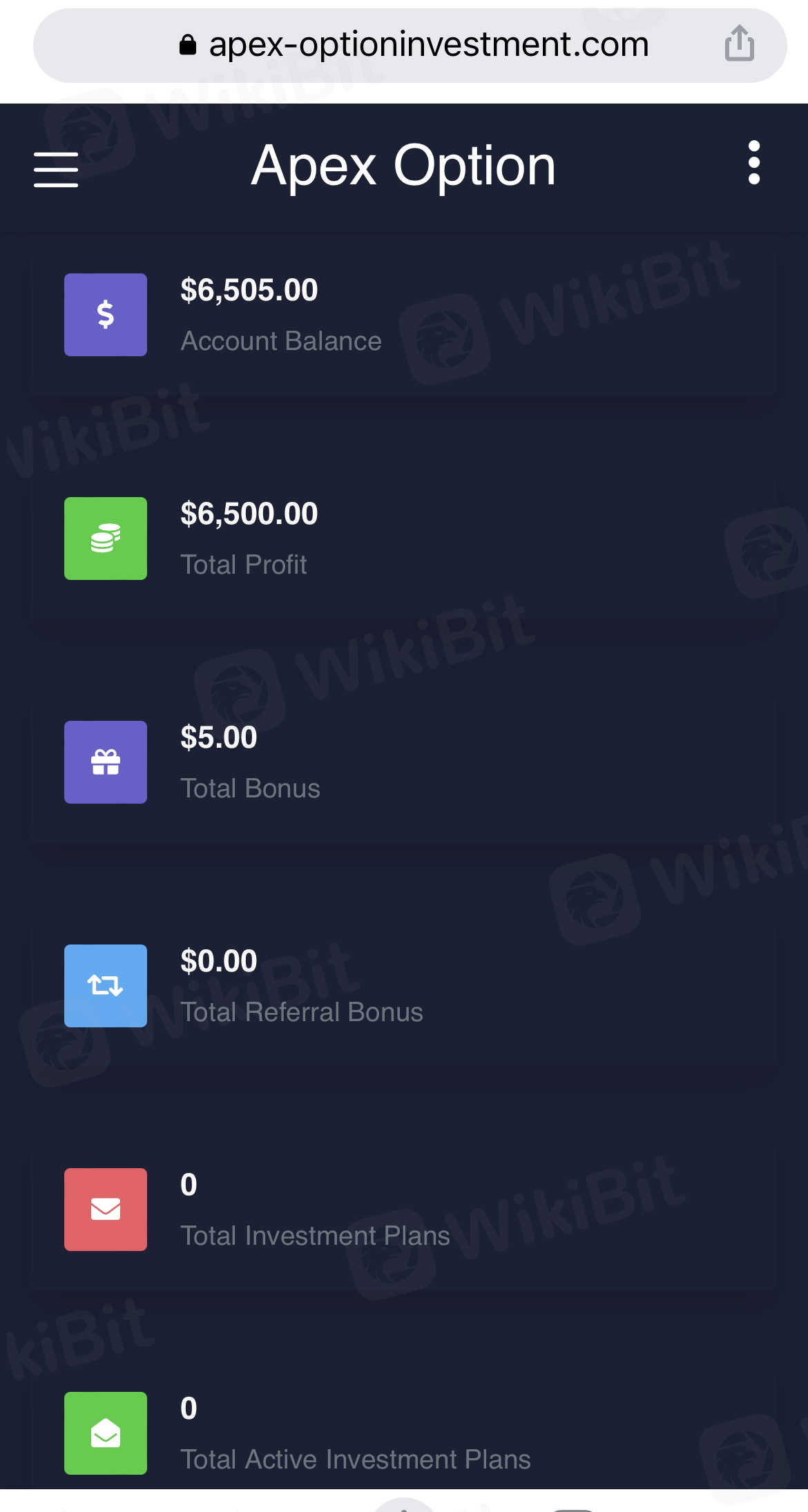 https://apex-optioninvestment.com/secure/account/dashboard Few Day Back I Invested 500$ in this Platform but Was the Sales Person Said I can Withdraw in 1 week After putting the Request for withdrawal he said the Signals have exahausted you will be unable to Trade and Withdrawal will be possible only after you Deposit 1000$ for purchase of Signal Now the Account Balance is 6500$ and the Person is Asking me to deposit another 850$ to be able to Withdraw the platform was shut In December and The Person Again Contacted me with new number and now he’s asking for 850$ for me to Withdraw.