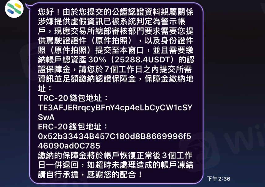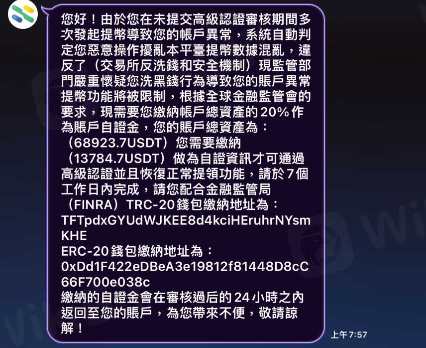 無法提現,要求繳納自證金
