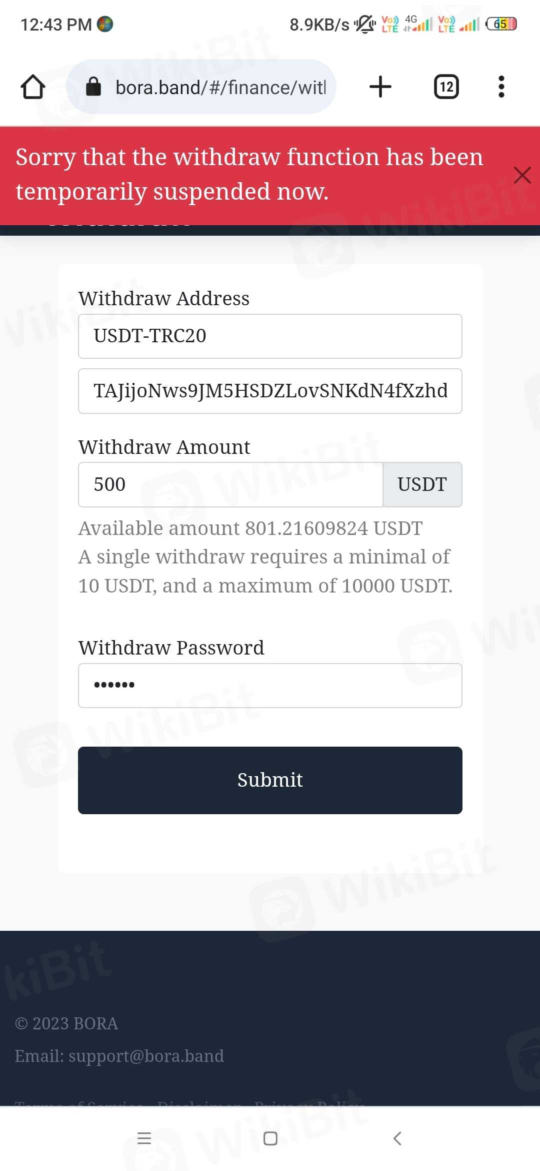 bora band is scammer platform and my asset is not withdraw. now says withdraw has been suspended now. for 7 days .