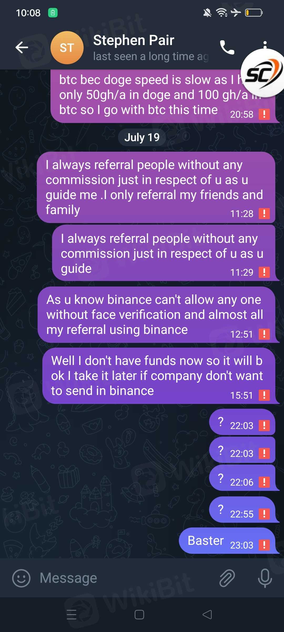 在我投资时,我收到一条短信,说是我们无法在币安进行任何交易,所以我们就发送到信托钱包中。我们被提供了 12 个钱包地址。但后来他们偷走了全部现金并阻止了交易。我有完整的证据。我损失了 1000 美元
