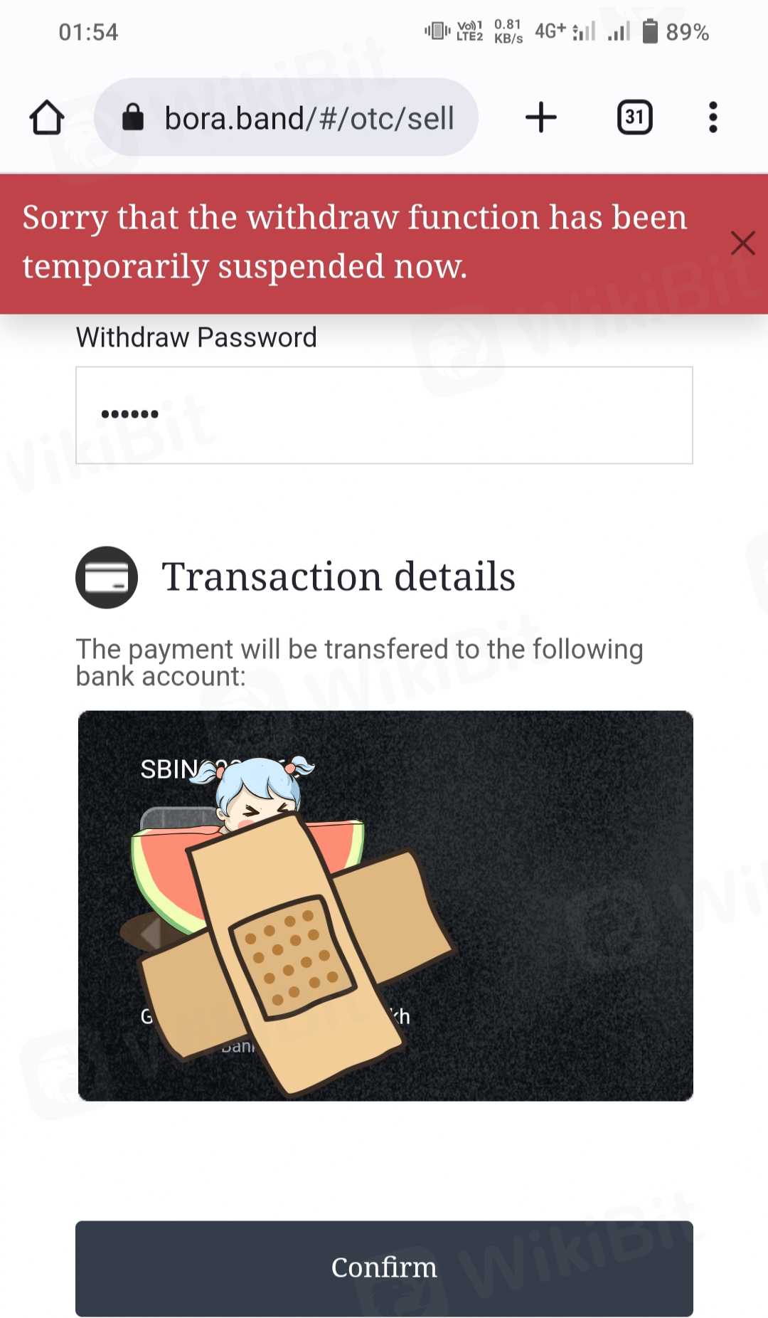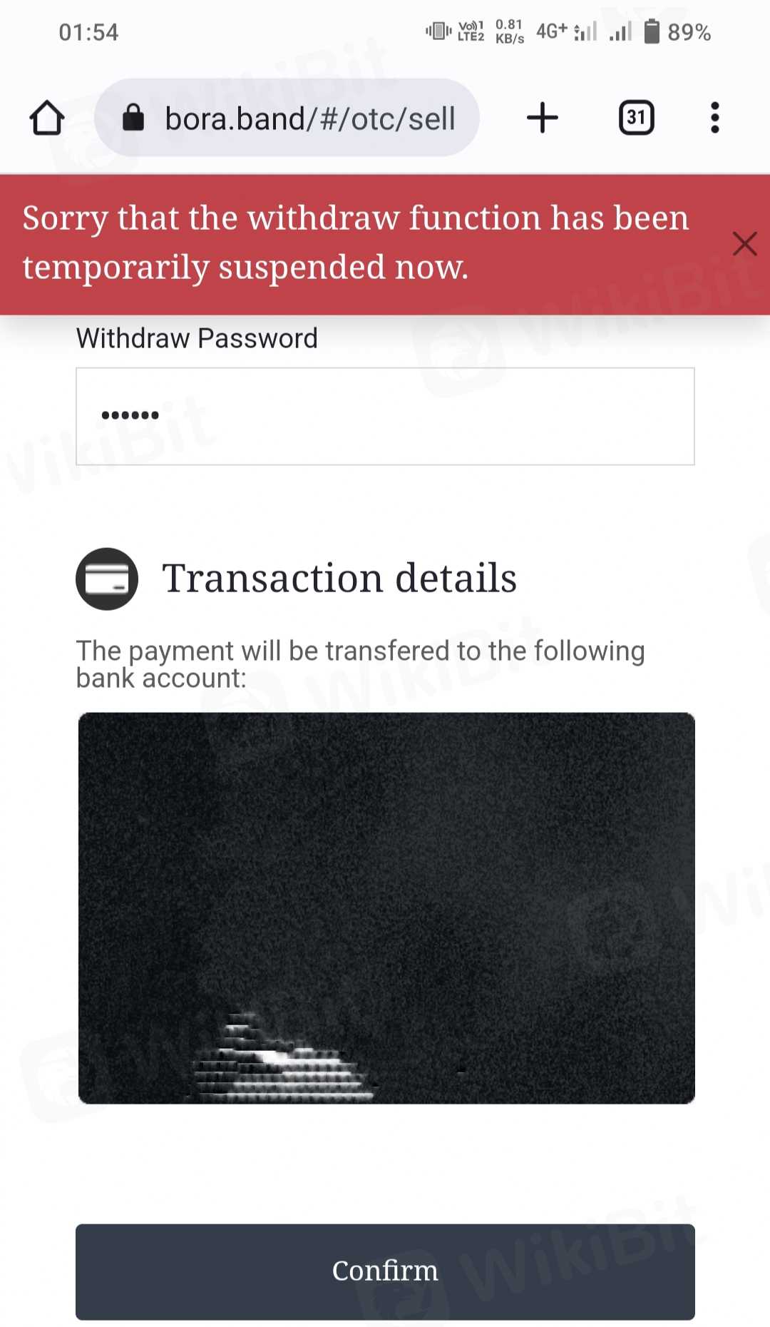 Bora NSQ承诺在7月22日后开放出金系统,但没做到。正在进行的usdt出金被取消了,我花了100 usdt激活了账户。但今天所有提款系统均被叫停,提款系统也暂时停止显示。