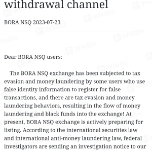 我的账户里有7500usdt,但是平台一直推迟出金,之前他们要我入金100usdt才能重新提现,我和朋友入了那100usdt。Bora又骗了我们,到现在bora还没允许出金...