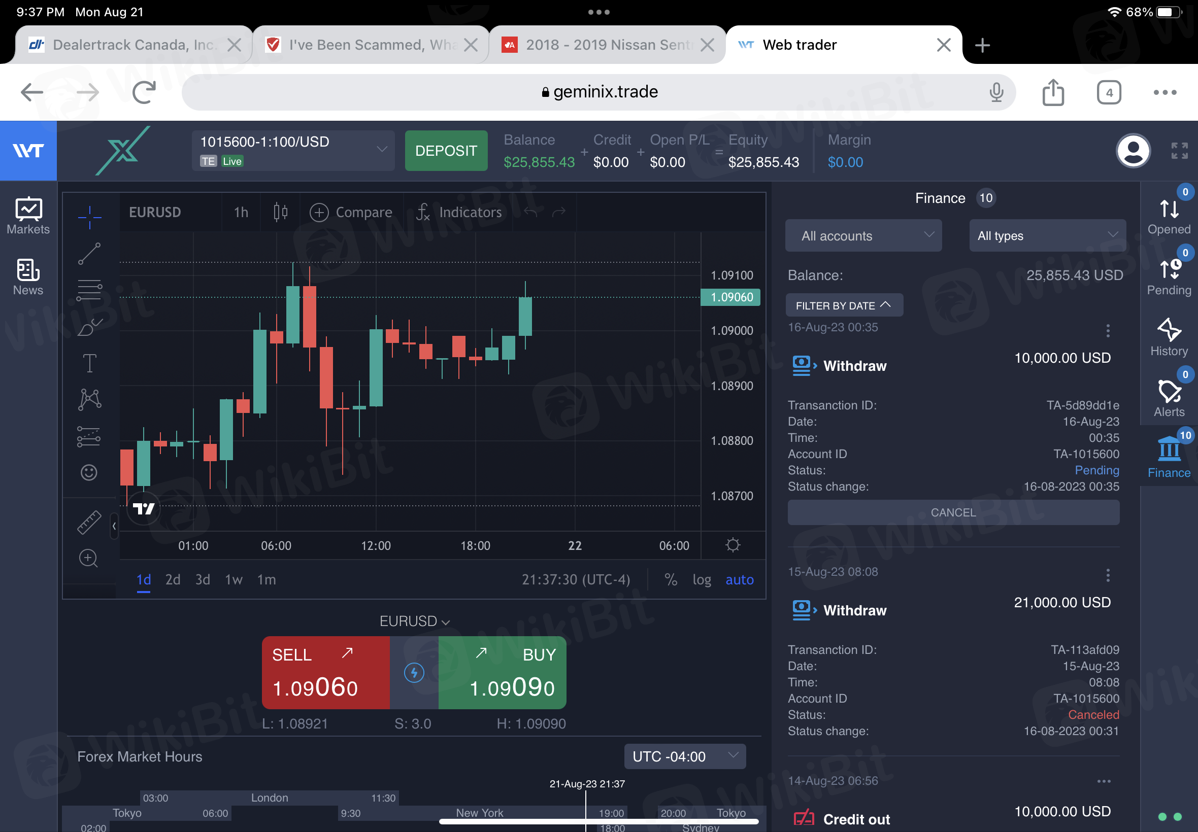 I started with $280 around then they asked more, the Financial Advisor said he’ll make more money. So I agreed to invest US$2000 , then he said he has a plan for Mae to make more. He’ll buy Bitcoin I have to put half and platform will give me a credit for the remaining half. They made it. Then he asked me to pay commission which 20% to get my money. So I tried to pay them, then he never replied and I never get my money. They transferred USDT Etherium which is not supported with any wallet or platform in Canada. Now I don’t know how to get my money. Their email doesn’t work, the support never answer. And the guy never answer. It’s just a scam and my account in their platform still showing my money there which is pending. And seems they froze my account. I wish to give them -100 ranking