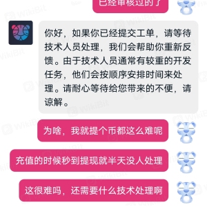 一直让发邮件,邮件发了三四次,客服找了五六次,一直说等技术人员处理,想不明白,连最基本的冲提币都需要技术人员吗?