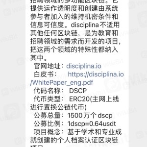 号称ada前团队 佐佐木投资的dscpl项目的诱导欺骗投资者!21年的1月份出现了一个项目他叫教育链dscp当时宣称全球公墓1500万枚dscp价格0.64u,三月份上线交易所。然而到了三月份该项目突然宣布启动换币计划1:10兑换由以太坊链上换到bsc链上 成dscpl后上交易所搁浅。又到了五月份突然开通了uniswap上交易。都知道uniswap上的币是以太坊链上所以换到bsc上的dscpl等于废币。后来开始官方就开始链上卖币行动。然而到了五月底突然出现了好多市场队长新建各种群聊拉新人教导如何买币。后来代币已上线币核交易所,目前价格和公墓比净亏10多倍。