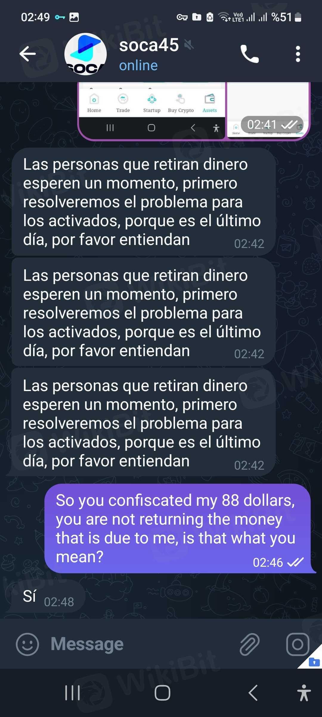 我在SOLAIN平臺上存了 50 美元,我的錢還剩88美元,但是他們不讓我取款。