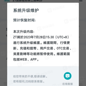 一直维护,恢复时间连写都没写,客服也联系不上,已经进不去,我里面几万的币没地方提,
