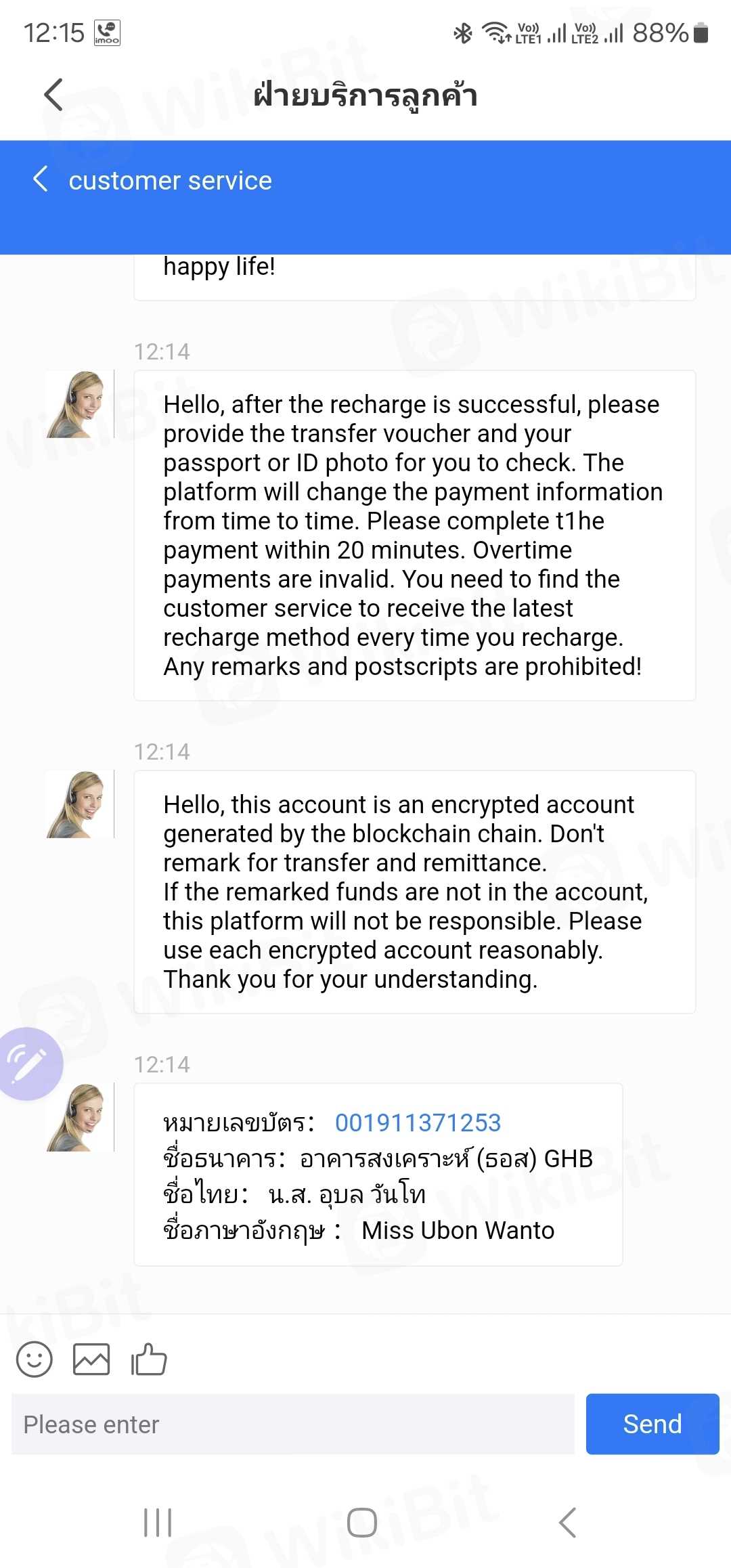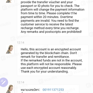 我被一個不知名的人騙了,他說服我在TRJITFVBD應用程式中以GBX為經紀人進行交易,起初我能夠存款和提款。然後他們騙我添加資金,我進行提款,但無法再進入系統。大約損失了10萬泰銖,提款的再融資是轉到一個無法通過的帳戶,很可能是一個馬甲帳戶,因為每筆轉入或轉出的人都不同。
